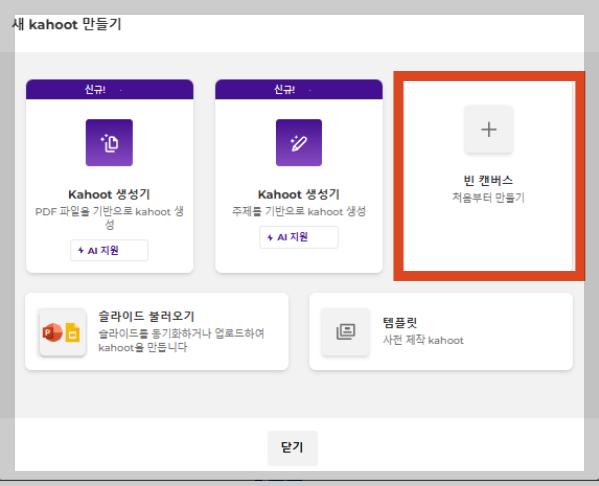▶카훗 메인페이지에서 만들기를 클릭하면 카훗 퀴즈를 만들수 있는 화면이 나오게 됩니다.