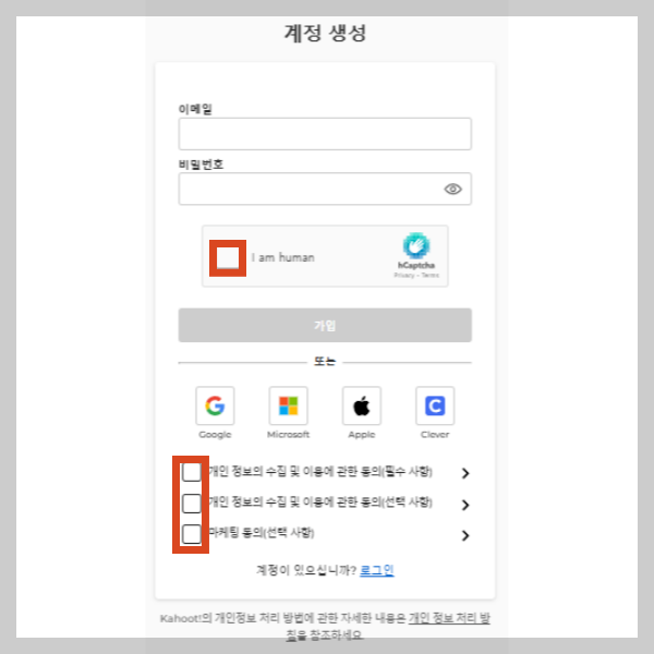 카훗은 2가지 방식의 계정 생성을 제공하고 있습니다.