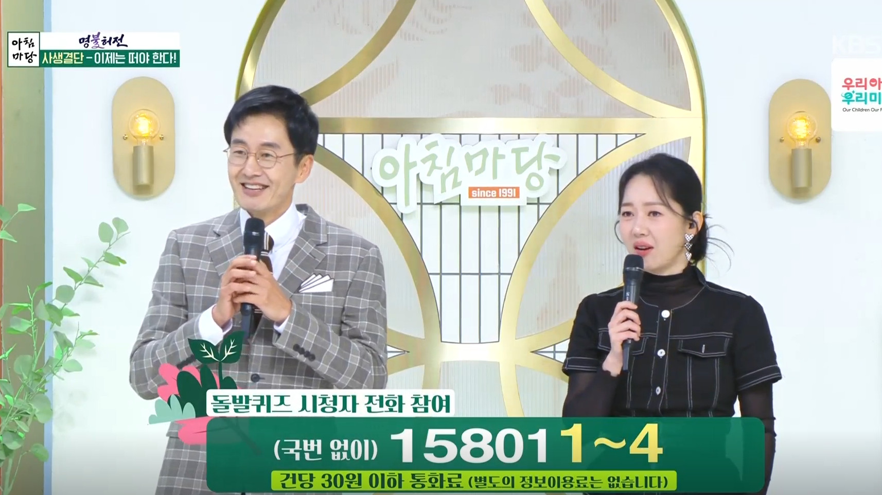 한국의 대표적인 아침 방송 프로그램인 아침마당에서는다양한 시청자 참여 코너를 통해 많은 사람들에게 다채로운 정보를 제공하는데요.그중에서도 인기 있는 코너인 돌발퀴즈는 실시간으로