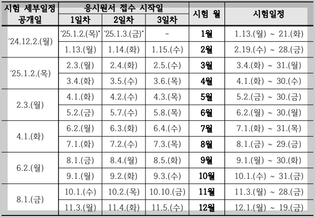 □ 응시원서를 원활하기 접수하기 위해서 시험장소별로 분리하여 접수 시작일정을 분리하였습니다.