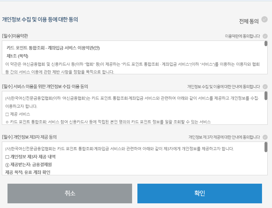 5. 카드 포인트 통합조회 이용을 위한 위임 동의