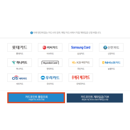 카드포인트 통합조회를 통해 나만의 적립된 포인트를 확인한 후