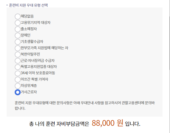 교육비 880,000원에 해당되는 금액 중 792,000원의 국비지원을 받고
