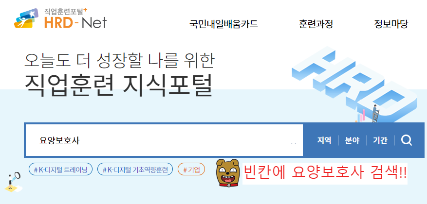 HRD-Net 홈페이지를 통해 요양보호사 교육과정을 수강신청하면 되는데