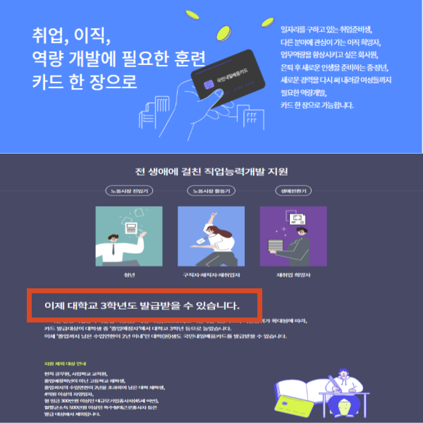 국민내일배움카드는 취업, 이직, 역량 개발에 필요한 훈련을 지원하기 위해 발행된 카드이며,
