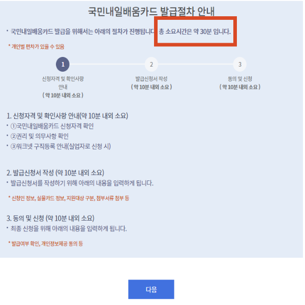 ▶국민내일배움카드 발급시간 : 대략 30분정도 (①~③까지 각각 10분씩 소요)