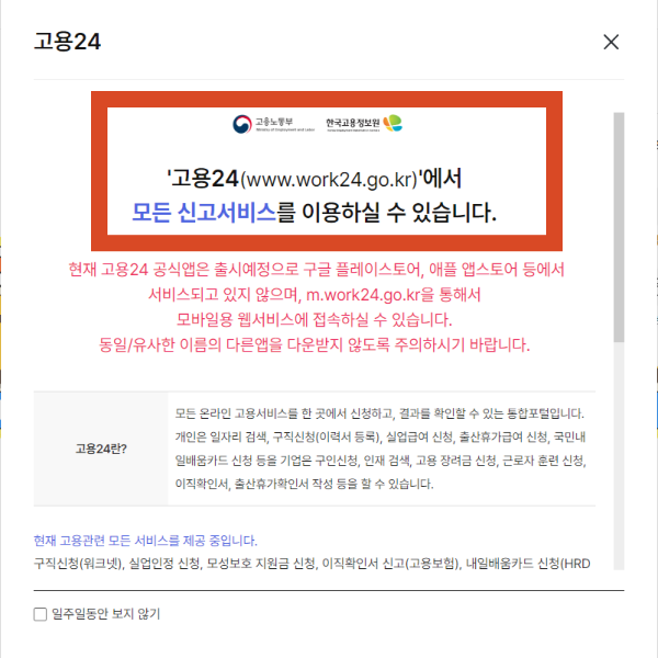 ※ 고용24와 연동되어 있으며, 실명인증 확인을 하라는 안내문구가 보이면, 실명인증 진행합니다.