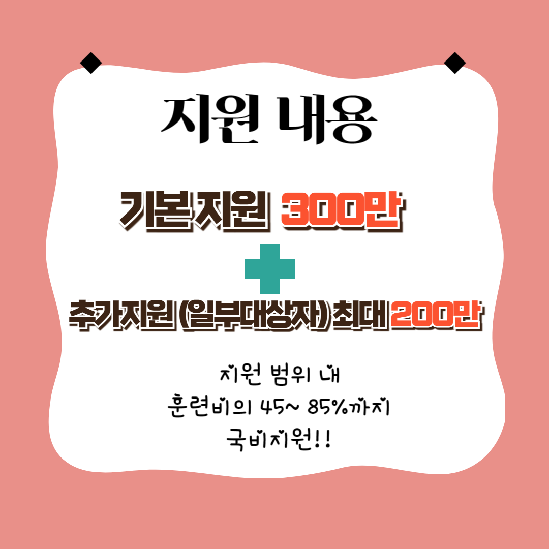 ※ 지원범위 내 훈련비의 45%~85%까지 국비로 지원이 됩니다.