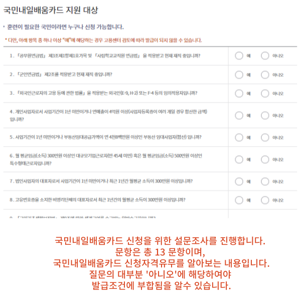 ▶국민내일배움카드 발급을 위한 설문조사를 진행합니다 (총 13문항)