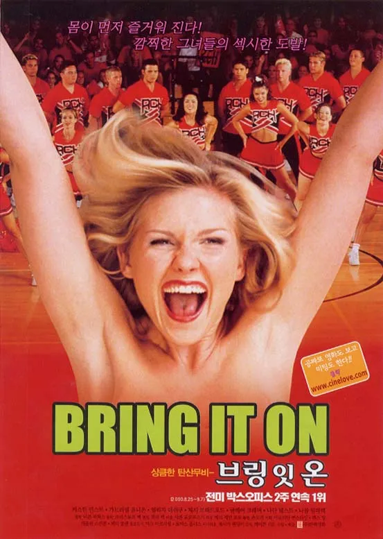< 브링 잇 온 (Bring It On) >은 2000년에 개봉되어 벌써 20년 넘은 영화지만 지금 봐도 재미있고, 볼거리가 많아 눈이 즐겁습니다. 영화의 매력적인 줄거리, 기억에 남을 만큼 강렬한 등장인물들, 그리고 인상적인 치어리딩은 이 치어리더를 다룬 영화 중에서 시대를 초월한 고전 작품으로 만들었습니다. 가볍게 웃고 싶을 때든 단순히 즐거움을 원할 때 든, 이 영화를 보다 보면 어느새 기분 좋게 웃고 있을 것이라고 생각합니다. 치어리딩은 우리나라에서는 공식 경기에서만 잠깐씩 볼 수 있지만 미국에서는 학교에 치어리딩 동아리가 있는 곳이 많다고 합니다. 배경이 학교이기 때문에 아직은 미성숙한 소녀들이 갈등을 겪으며 성장하는 모습이 기특하게 느껴지고, 겪는 문제들이 누구나 한 번쯤은 고민하고 경험해 본 내용이라 공감하면서 볼 수 있습니다.