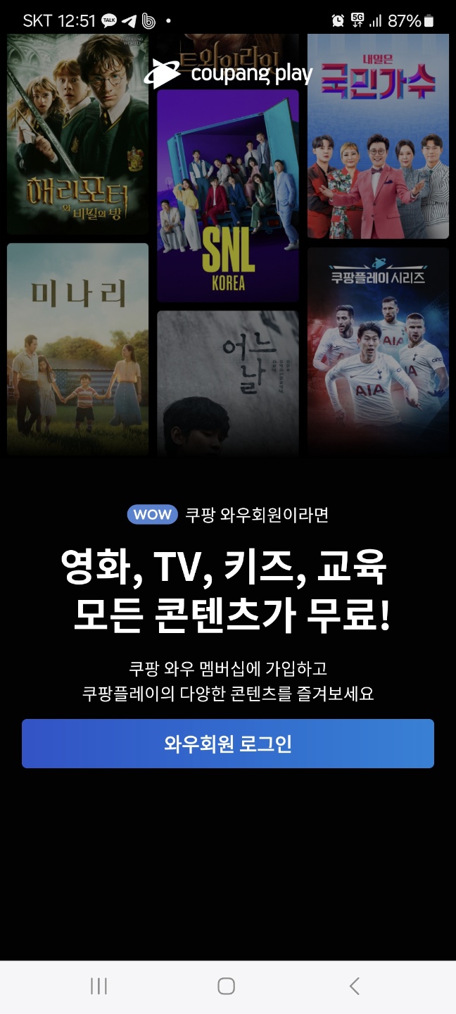 누구나 쿠팡플레이를 무료로 보실 수 있습니다.(일부 유료콘텐츠 제외)