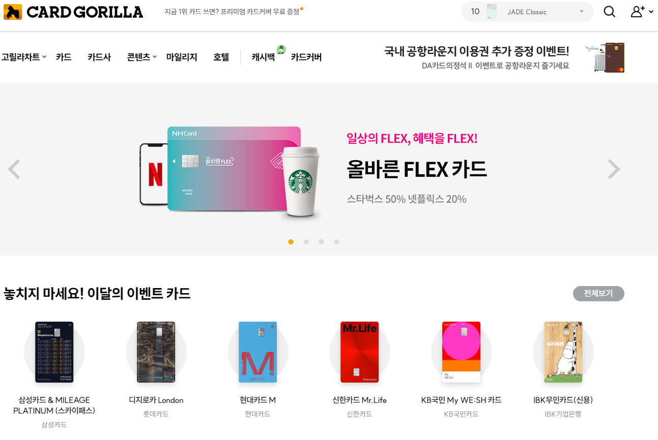 카드 고릴라는 카드사별 주요 이벤트 정보의 최신성을 유지하고 있어 최신정보를 확인할 수 있습니다.