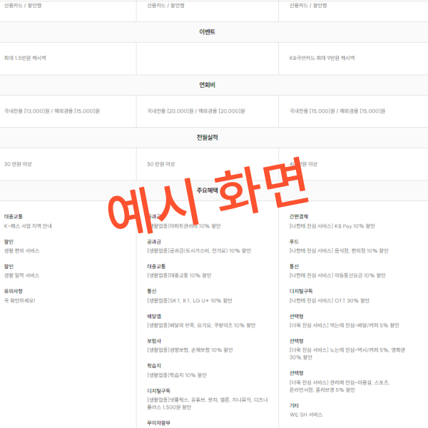 각 카드의 혜택을 쉽게 파악할 수 있도록 도와줍니다.