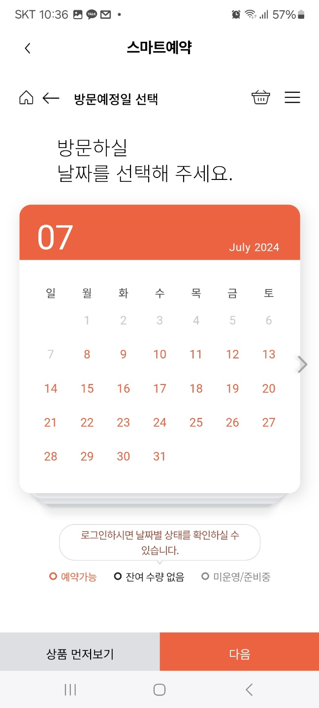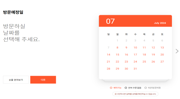 ▶방문예정일자 및 상품선택 확인 후 바로 예약