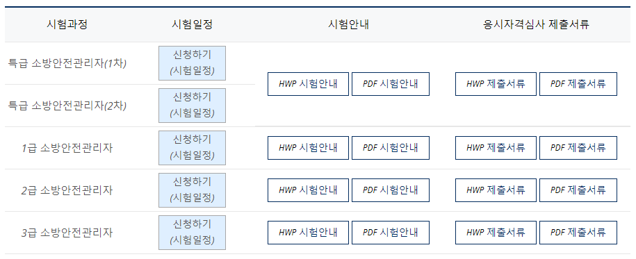 등급별 소방안전관리자 시험을 접수할수 있습니다.