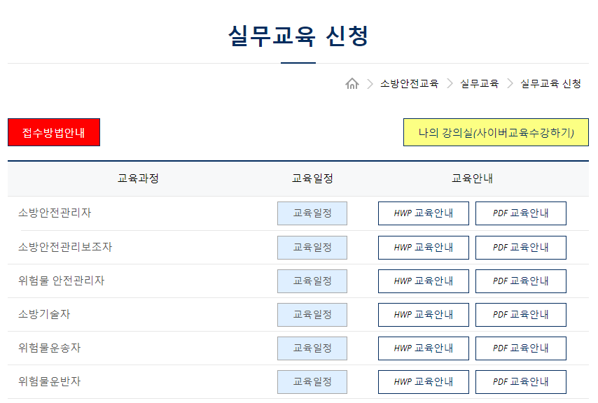 소방안전관리자로 선임된 경우 실무교육은 필수적으로 이수해야하는 과정입니다.