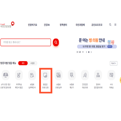 국민건강보험 홈페이지를 통해 국민건강보험 환급금 조회 및